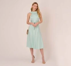 No matter the event, you’ll love wearing this jersey dress. This day-to-night dress features a blouson bodice with v-neck, short sleeves with cold-shoulder cutouts, and a pintucked skirt. Crafted from knit jersey fabric, this dress is incredibly comfortable and has a generous amount of stretch. A zipper closure at the back completes this dressed-up look. Style this dress for day with flats or pumps, or dress it up for night with metallic heels and a beaded clutch.