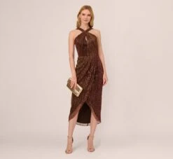 Get ready to be a style icon at all your events. Our sleeveless halter jumpsuit is crafted in a luxe stretch knit crepe and finished with a sparkling handsewn crystal-embellished waistband. The unbelievably flattering twist front design gives this wide-leg style added texture and dimension. Sleek back zip closure. Perfect for every minute of wedding season and black-tie galas.