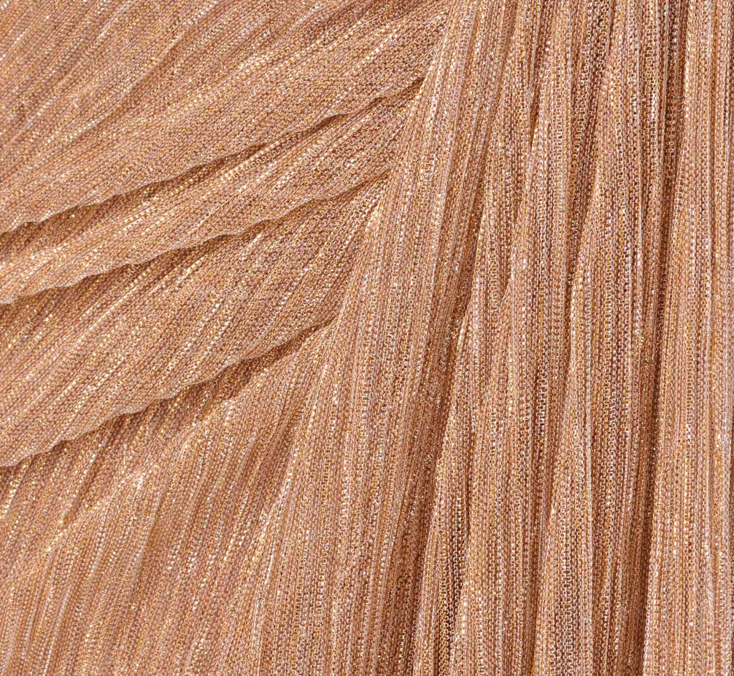Adrianna Papell Metallic Crinkled Mesh Draped Long Gown In Light Gold
