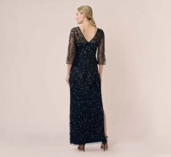 Create a high impact look at your next formal event when you choose this beautiful, beaded evening dress. For that upcoming wedding or gala, this special occasion gown features a blouson bodice, sparkling scalloped beading, and a flowing straight skirt. The back features a zipper closure and keyhole detail. Pair this beautiful sleeveless evening dress with chandelier earrings and a sleek metallic clutch for a jaw-dropping look sure to turn heads all evening.
