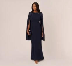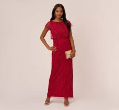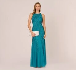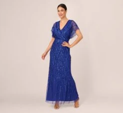 Adrianna Papell Beaded Blouson Mermaid Gown With Sheer Dolman Sleeves In Dusty Emerald