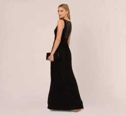Adrianna Papell Hand-Sequined Ruched Long Jersey Gown In Black