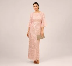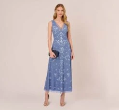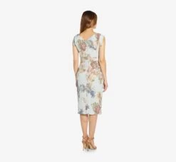 Adrianna Papell Metallic Floral Matelasse Midi-Length Sheath Cocktail Dress In Sky Blue Multi