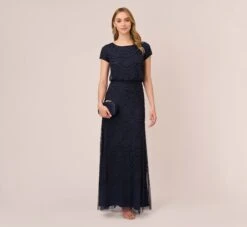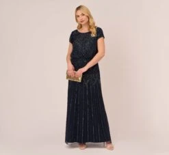 Adrianna Papell Sequin Floral Embroidered Sheath Dress With Cap Sleeves In Blue Green Multi