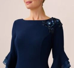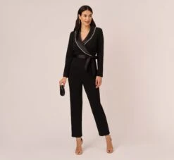 Adrianna Papell Satin Crepe Three Quarter Sleeve Jumpsuit With Buckle Waist In Dark Navy