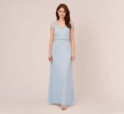 Adrianna Papell Embroidered Three Quarter Sleeve Short Sheath Dress With Bell Sleeves In Blue Multi