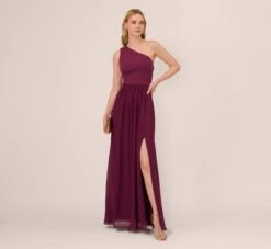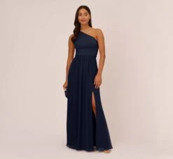 Adrianna Papell Plus Size Chiffon And Jersey Flounce Draped Dress With Pleated Details In Midnight