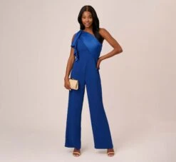 Adrianna Papell Plus Size Knit Crepe Bow Sheath Dress With Three Quarter Sleeves In Violet Cobalt
