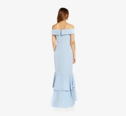 Adrianna Papell Plus Size Hand-Beaded Blouson Long Gown With Flutter Sleeves In French Blue